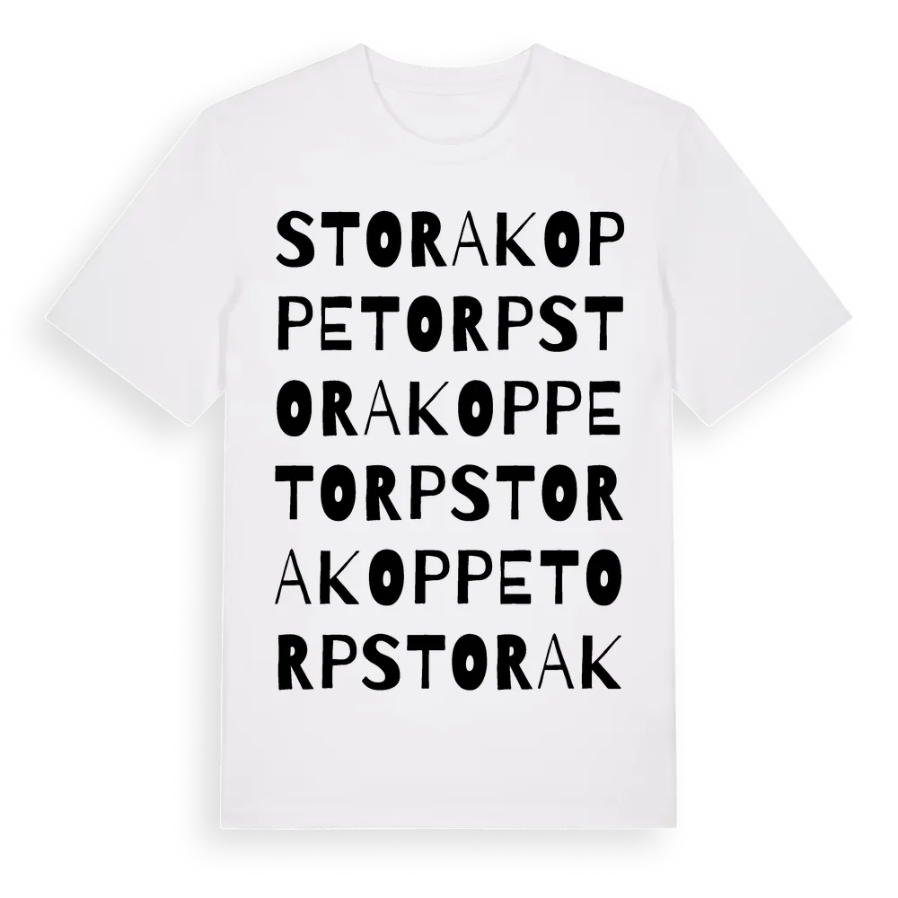 Stora Koppetorp ordlek t-shirt är inspirerad av Stora Koppetorp i Östergötlands län, Sverige. Tröjan är designad för dig som har en speciell koppling till platsen – oavsett om du bor här, har rötterna här eller bara älskar Stora Koppetorp.