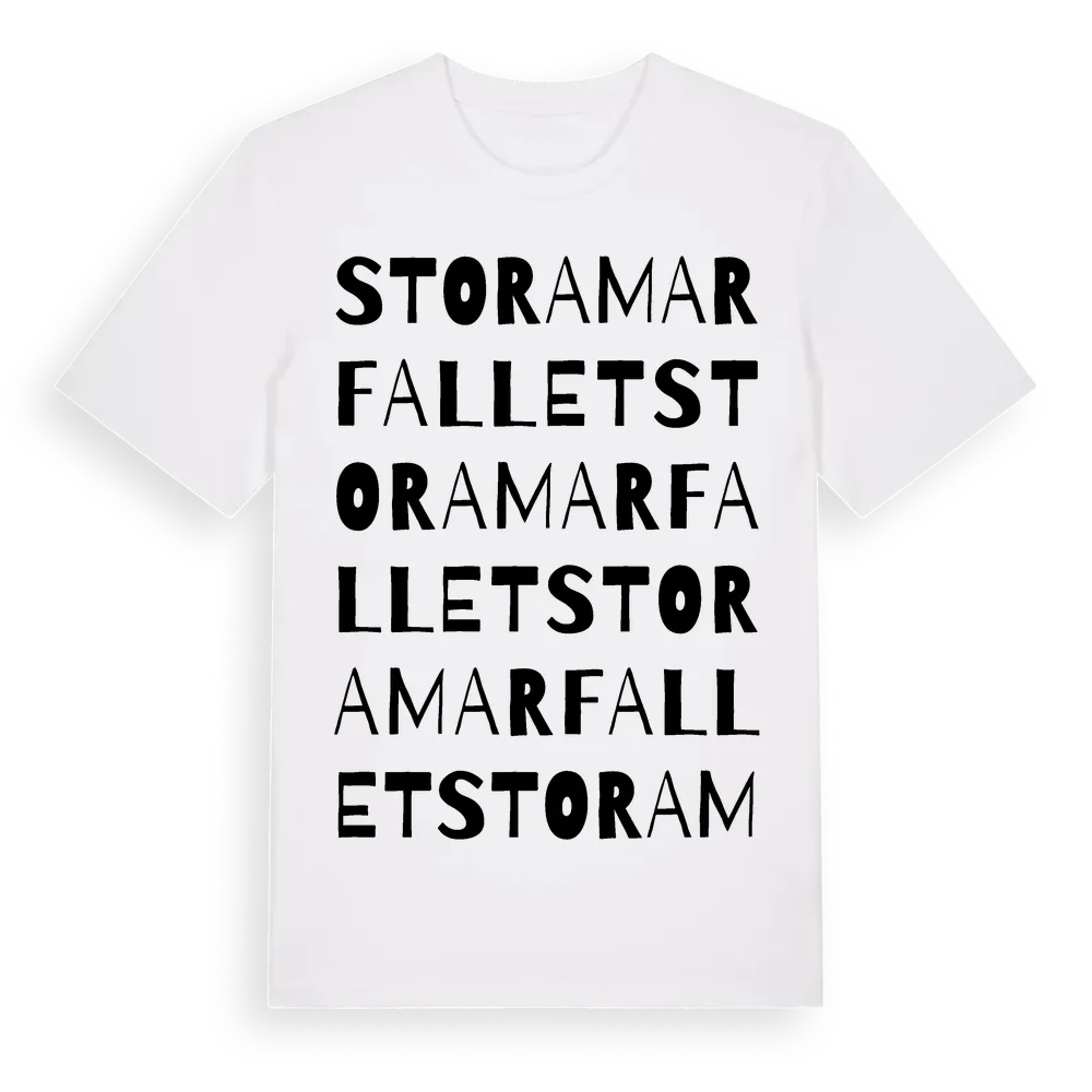 Stora Marfallet ordlek t-shirt är inspirerad av Stora Marfallet i Östergötlands län, Sverige. Tröjan är designad för dig som har en speciell koppling till platsen – oavsett om du bor här, har rötterna här eller bara älskar Stora Marfallet.