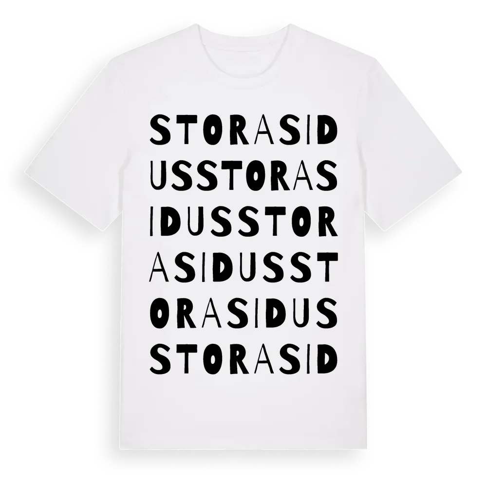 Stora Sidus ordlek t-shirt är inspirerad av byn Stora Sidus i Östergötlands län, Sverige. Tröjan är designad för dig som har en speciell koppling till platsen – oavsett om du bor här, har rötterna här eller bara älskar Stora Sidus.