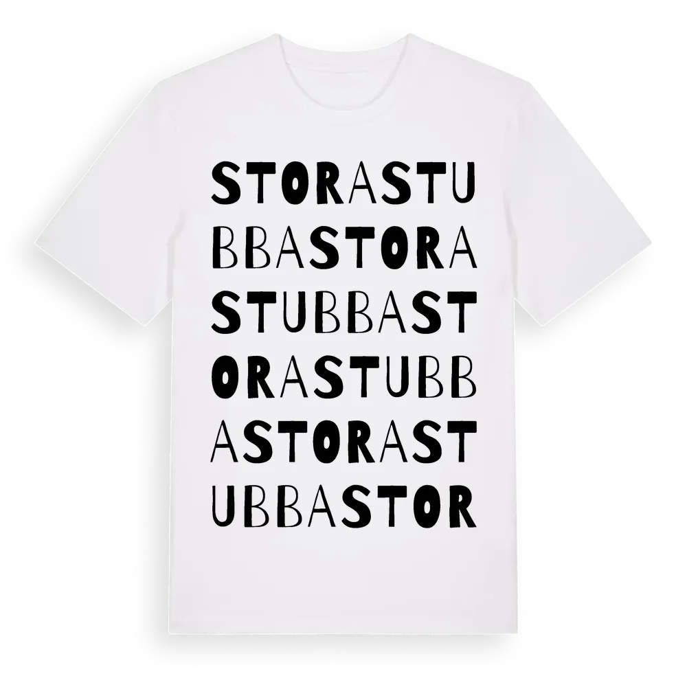 Stora Stubba ordlek t-shirt är inspirerad av Stora Stubba i Östergötlands län, Sverige. Tröjan är designad för dig som har en speciell koppling till platsen – oavsett om du bor här, har rötterna här eller bara älskar Stora Stubba.