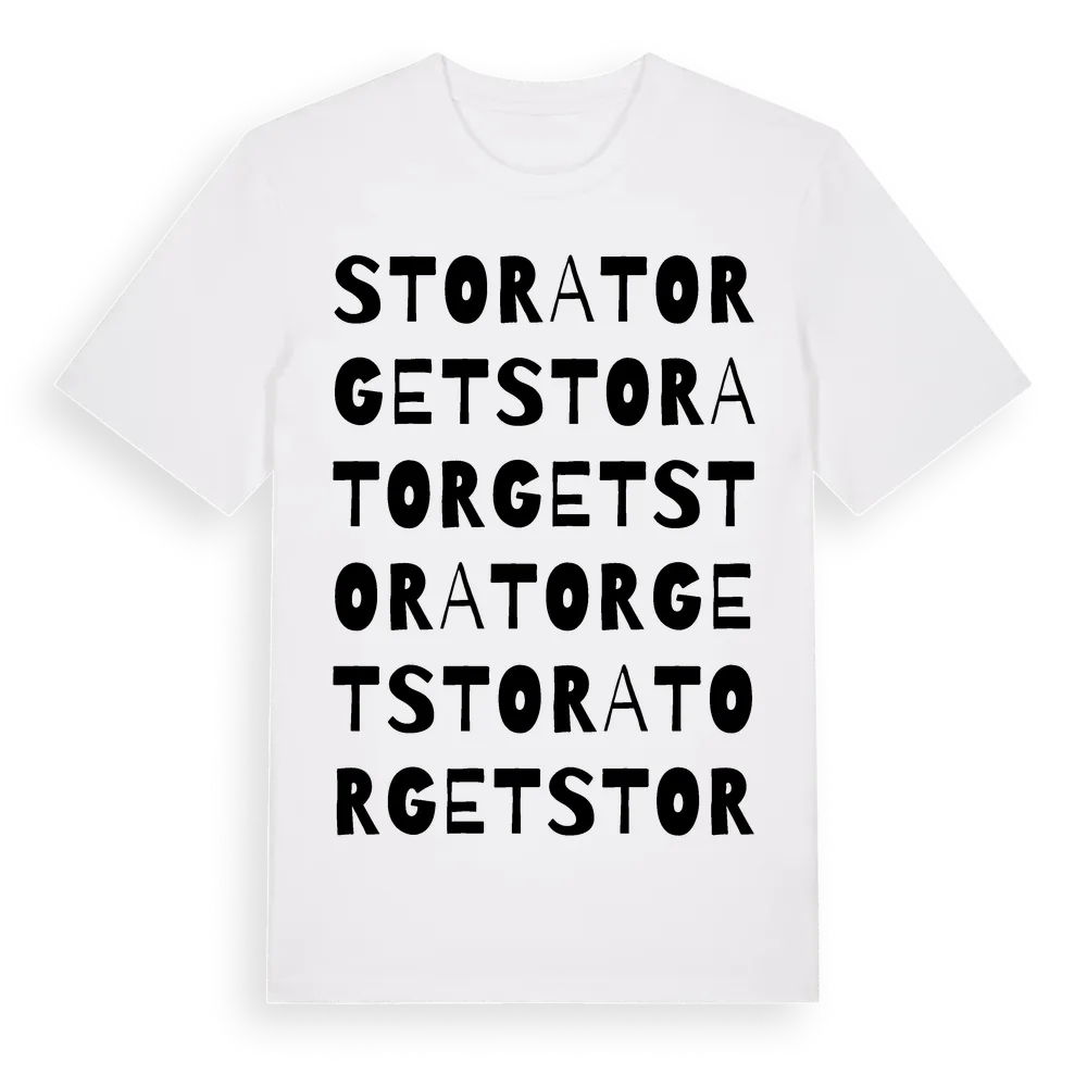 Stora Torget ordlek t-shirt är inspirerad av Stora Torget i Östergötlands län, Sverige. Tröjan är designad för dig som har en speciell koppling till platsen – oavsett om du bor här, har rötterna här eller bara älskar Stora Torget.