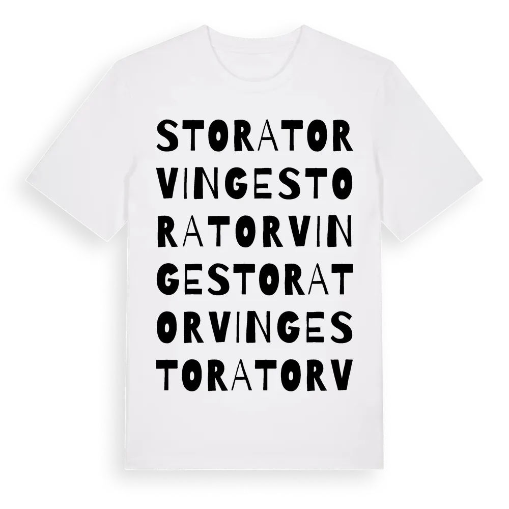 Stora Torvinge ordlek t-shirt är inspirerad av Stora Torvinge i Östergötlands län, Sverige. Tröjan är designad för dig som har en speciell koppling till platsen – oavsett om du bor här, har rötterna här eller bara älskar Stora Torvinge.