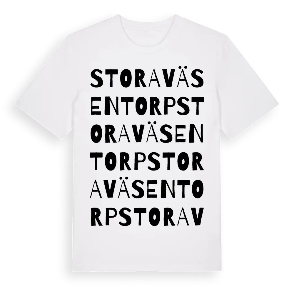 Stora Väsentorp ordlek t-shirt är inspirerad av Stora Väsentorp i Östergötlands län, Sverige. Tröjan är designad för dig som har en speciell koppling till platsen – oavsett om du bor här, har rötterna här eller bara älskar Stora Väsentorp.