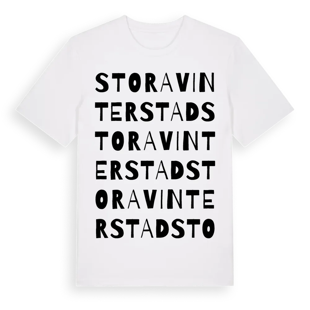 Stora Vinterstad ordlek t-shirt är inspirerad av Stora Vinterstad i Östergötlands län, Sverige. Tröjan är designad för dig som har en speciell koppling till platsen – oavsett om du bor här, har rötterna här eller bara älskar Stora Vinterstad.
