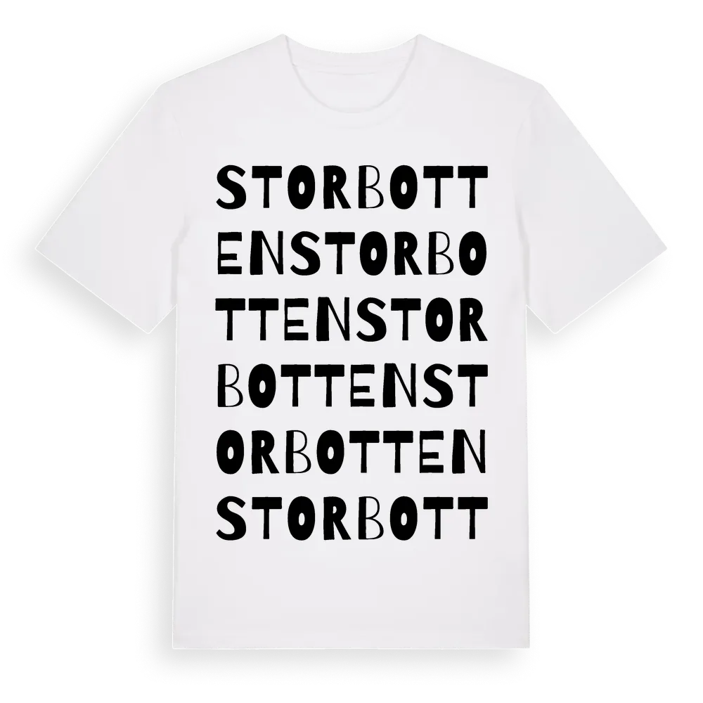 Storbotten ordlek t-shirt är inspirerad av Storbotten i Östergötlands län, Sverige. Tröjan är designad för dig som har en speciell koppling till platsen – oavsett om du bor här, har rötterna här eller bara älskar Storbotten.