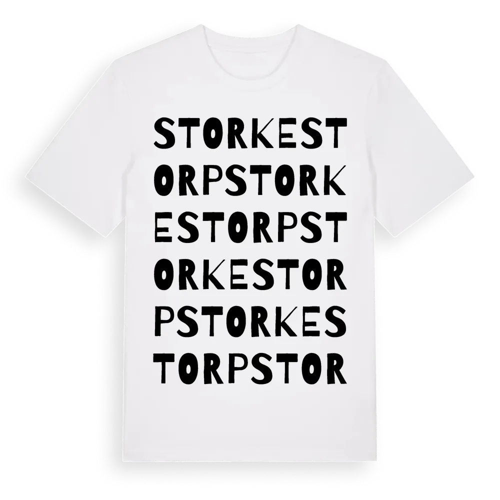 Storkestorp ordlek t-shirt är inspirerad av Storkestorp i Östergötlands län, Sverige. Tröjan är designad för dig som har en speciell koppling till platsen – oavsett om du bor här, har rötterna här eller bara älskar Storkestorp.