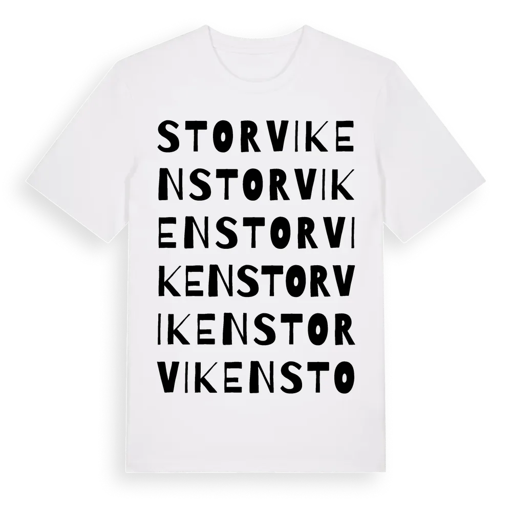 Storviken ordlek t-shirt är inspirerad av Storviken i Östergötlands län, Sverige. Tröjan är designad för dig som har en speciell koppling till platsen – oavsett om du bor här, har rötterna här eller bara älskar Storviken.
