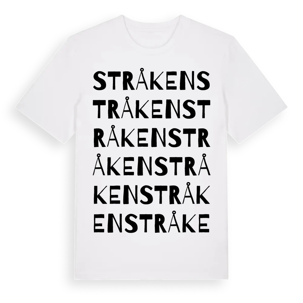 Stråken ordlek t-shirt är inspirerad av Stråken i Östergötlands län, Sverige. Tröjan är designad för dig som har en speciell koppling till platsen – oavsett om du bor här, har rötterna här eller bara älskar Stråken.
