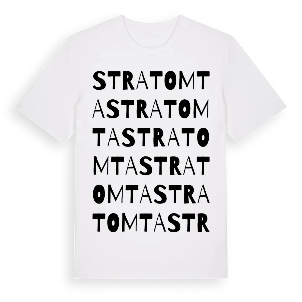 Stratomta ordlek t-shirt är inspirerad av byn Stratomta i Östergötlands län, Sverige. Tröjan är designad för dig som har en speciell koppling till platsen – oavsett om du bor här, har rötterna här eller bara älskar Stratomta.