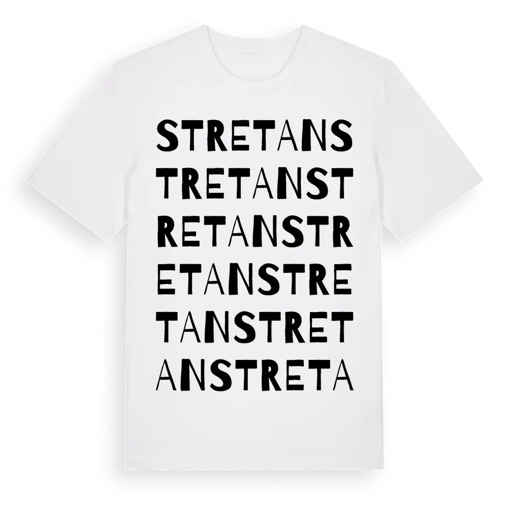 Stretan ordlek t-shirt är inspirerad av Stretan i Östergötlands län, Sverige. Tröjan är designad för dig som har en speciell koppling till platsen – oavsett om du bor här, har rötterna här eller bara älskar Stretan.