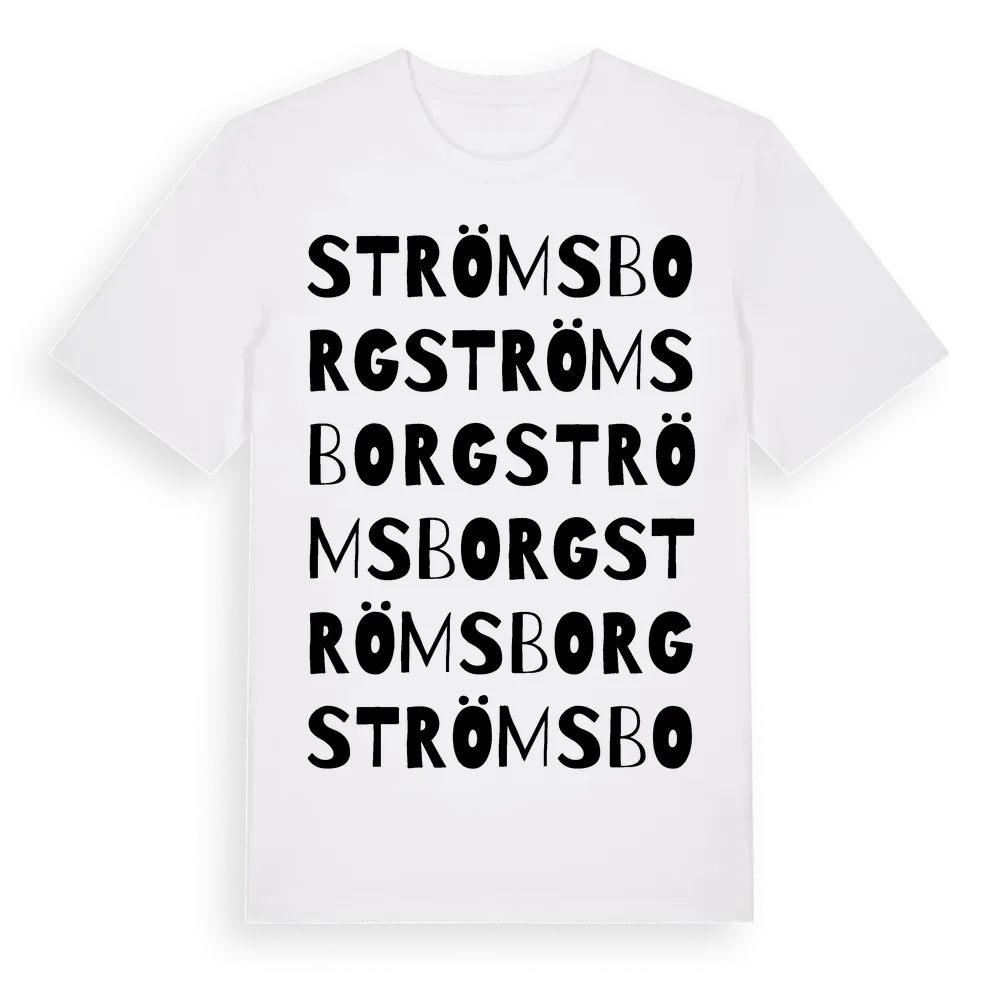 Strömsborg ordlek t-shirt är inspirerad av Strömsborg i Östergötlands län, Sverige. Tröjan är designad för dig som har en speciell koppling till platsen – oavsett om du bor här, har rötterna här eller bara älskar Strömsborg.