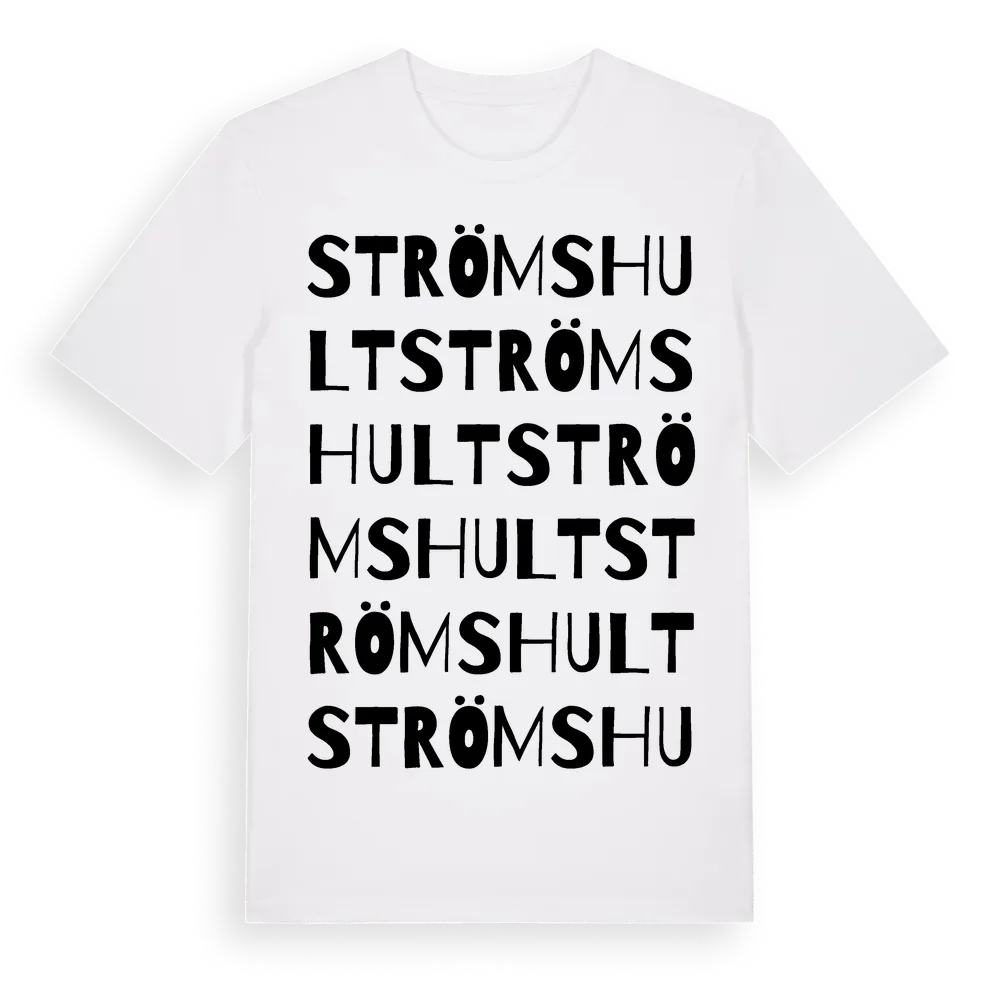Strömshult ordlek t-shirt är inspirerad av Strömshult i Östergötlands län, Sverige. Tröjan är designad för dig som har en speciell koppling till platsen – oavsett om du bor här, har rötterna här eller bara älskar Strömshult.