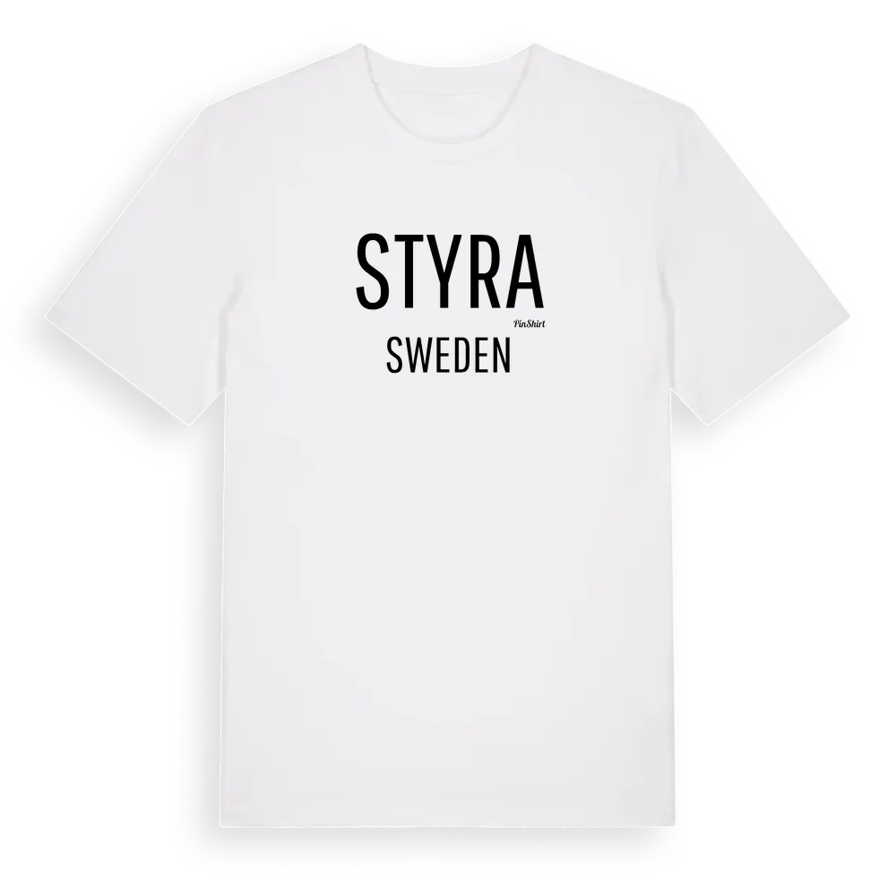 Styra i Sverige t-shirt är inspirerad av byn Styra i Östergötlands län, Sverige. Tröjan är designad för dig som har en speciell koppling till platsen – oavsett om du bor här, har rötterna här eller bara älskar Styra.