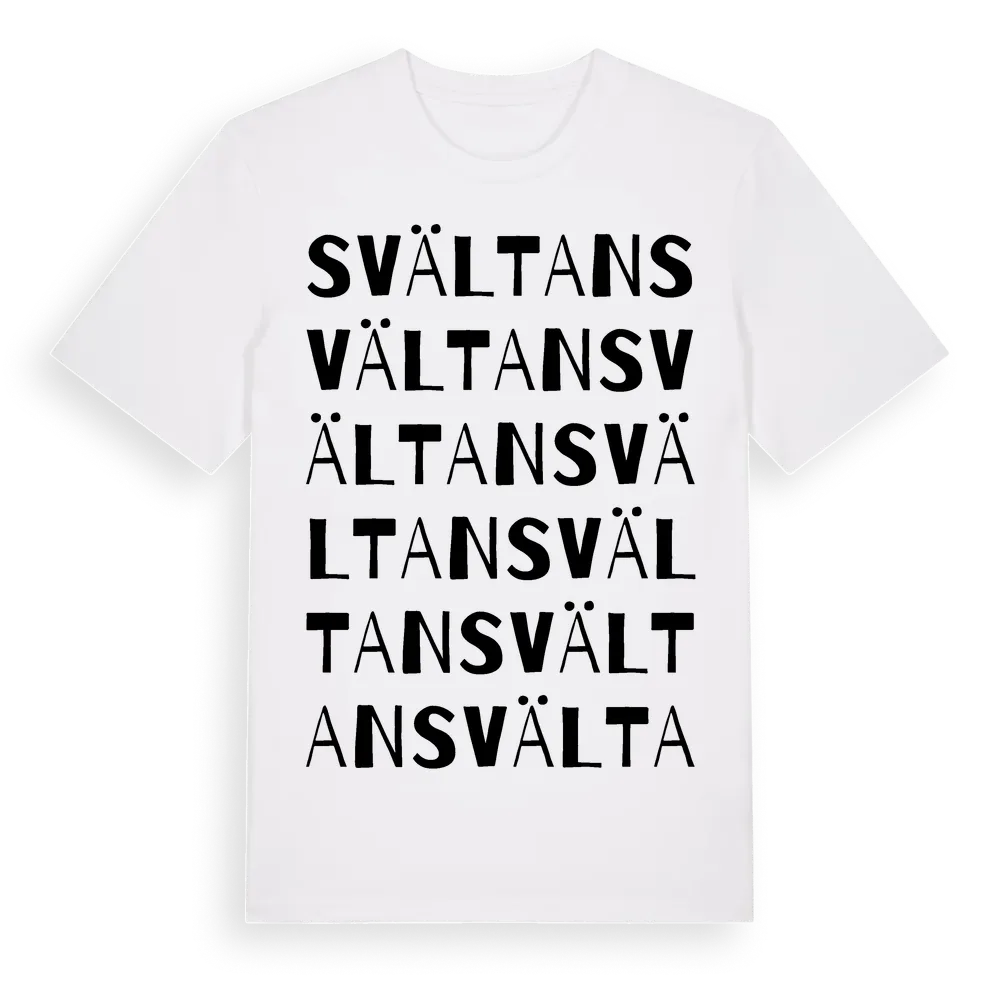 Svältan ordlek t-shirt är inspirerad av Svältan i Östergötlands län, Sverige. Tröjan är designad för dig som har en speciell koppling till platsen – oavsett om du bor här, har rötterna här eller bara älskar Svältan.