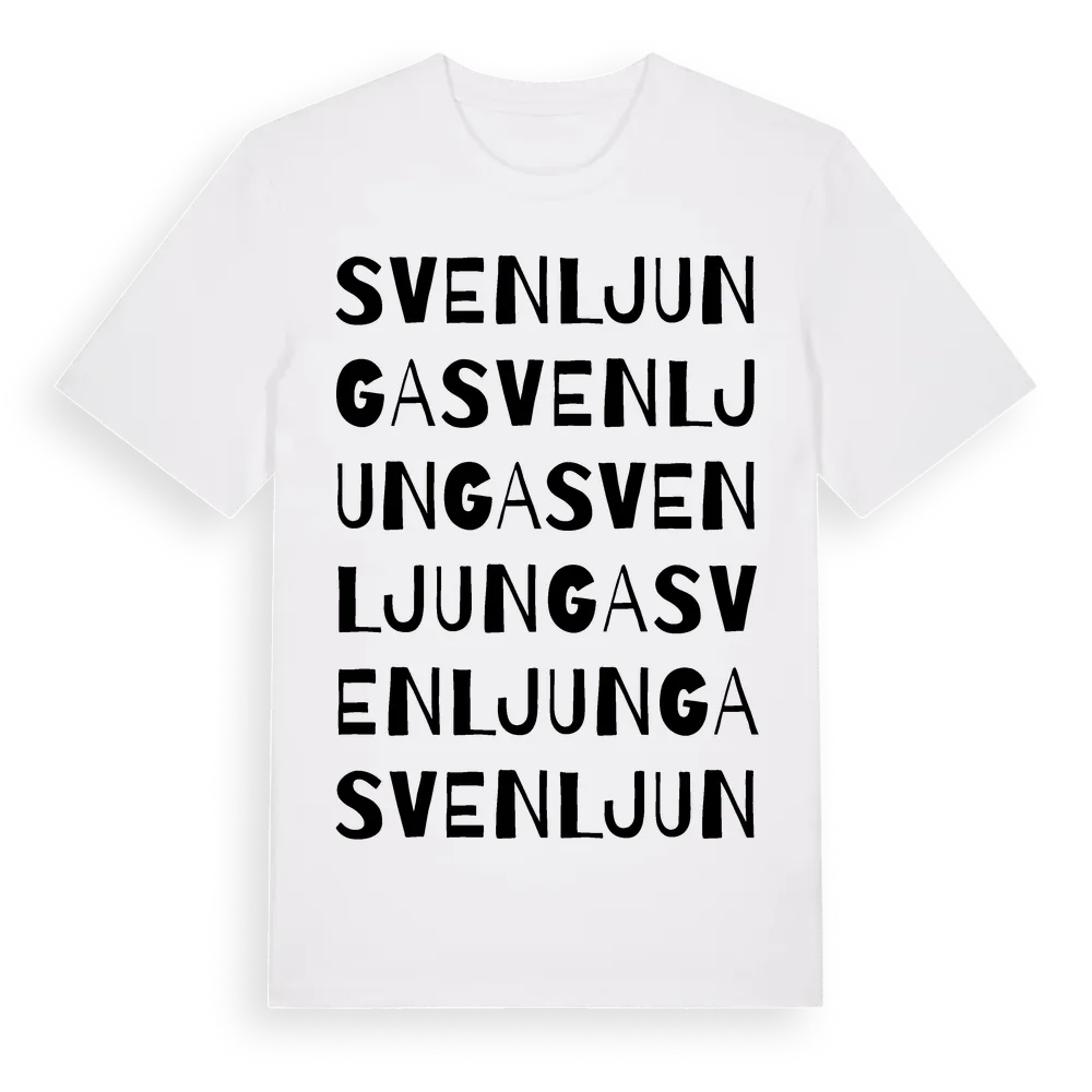 Svenljunga ordlek t-shirt är inspirerad av Svenljunga i Östergötlands län, Sverige. Tröjan är designad för dig som har en speciell koppling till platsen – oavsett om du bor här, har rötterna här eller bara älskar Svenljunga.