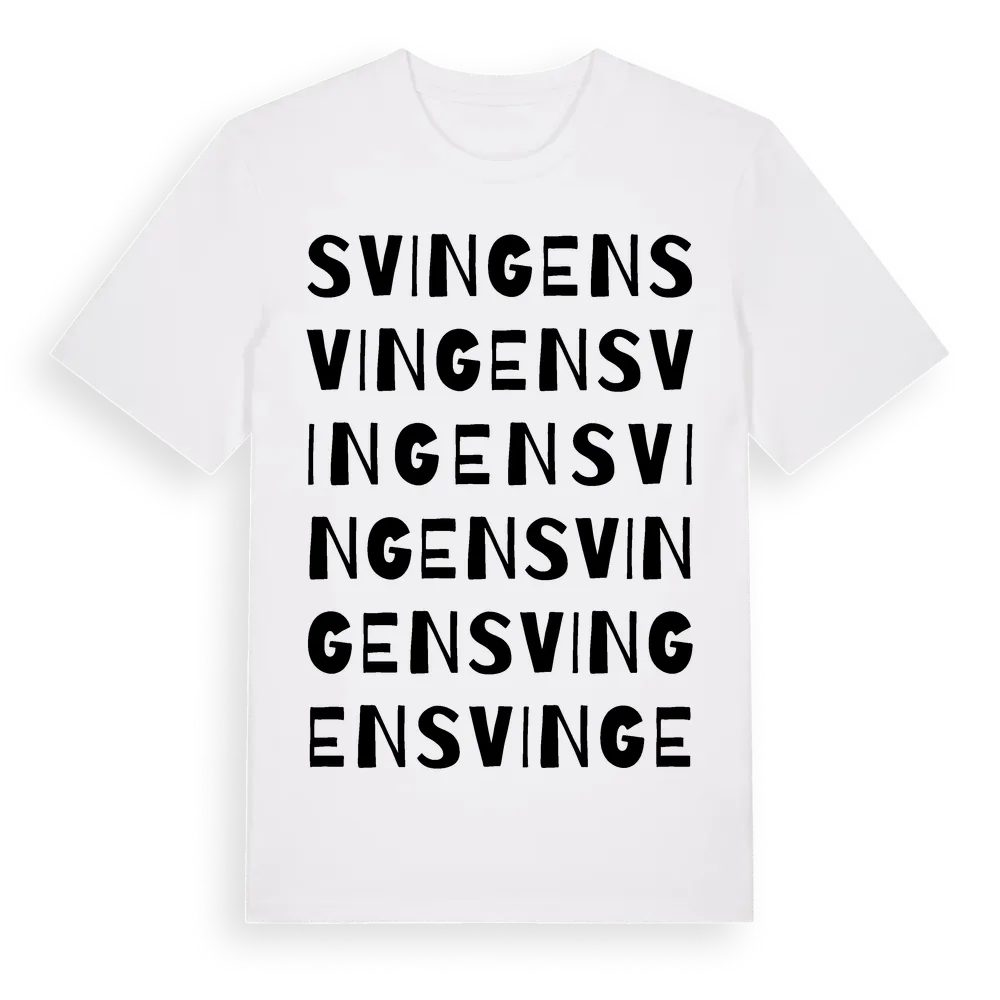 Svingen ordlek t-shirt är inspirerad av Svingen i Östergötlands län, Sverige. Tröjan är designad för dig som har en speciell koppling till platsen – oavsett om du bor här, har rötterna här eller bara älskar Svingen.