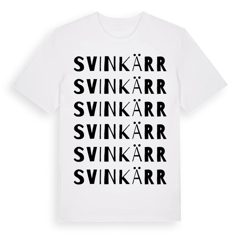 Svinkärr ordlek t-shirt är inspirerad av Svinkärr i Östergötlands län, Sverige. Tröjan är designad för dig som har en speciell koppling till platsen – oavsett om du bor här, har rötterna här eller bara älskar Svinkärr.