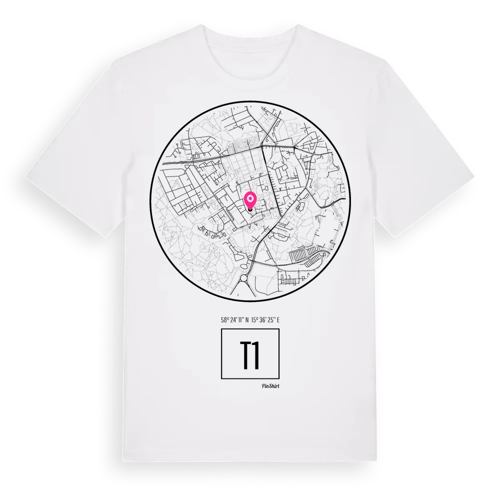 T1 t-shirt är inspirerad av stadsdelen T1 i Östergötlands län, Sverige. Tröjan är designad för dig som har en speciell koppling till platsen – oavsett om du bor här, har rötterna här eller bara älskar T1.