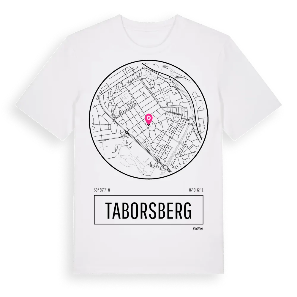 Ett rent, runt tryck med Taborsbergs namn. Minimalistiskt och stilrent – perfekt för den som känner platsen utan att skrika det. Premium bomull, unisex – från stadsdelen Taborsberg i Östergötlands län.