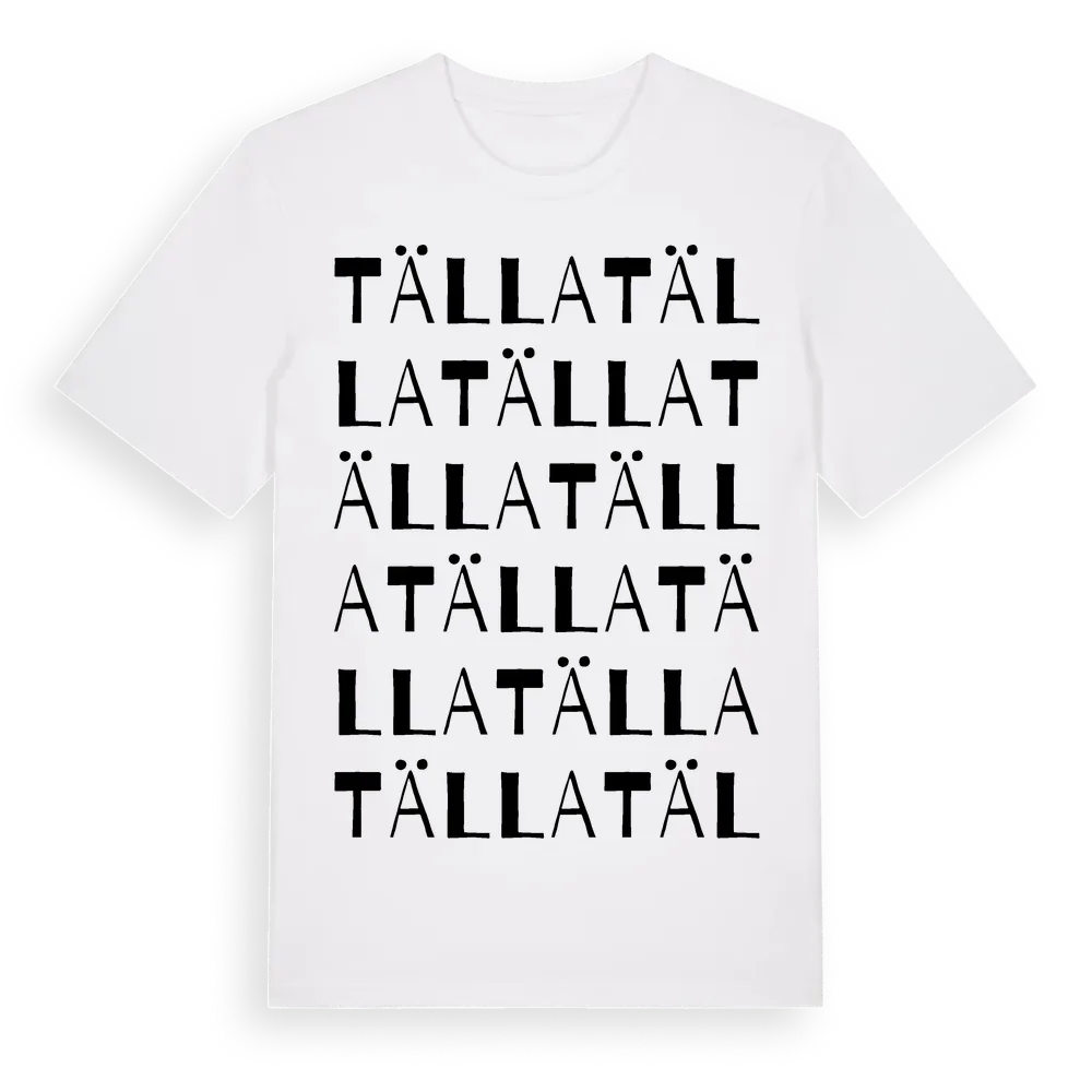 Tälla ordlek t-shirt är inspirerad av Tälla i Östergötlands län, Sverige. Tröjan är designad för dig som har en speciell koppling till platsen – oavsett om du bor här, har rötterna här eller bara älskar Tälla.