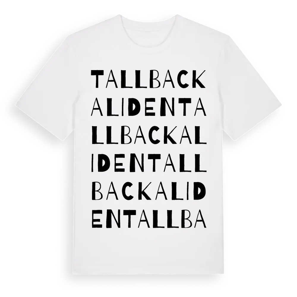 Tallbackaliden ordlek t-shirt är inspirerad av Tallbackaliden i Östergötlands län, Sverige. Tröjan är designad för dig som har en speciell koppling till platsen – oavsett om du bor här, har rötterna här eller bara älskar Tallbackaliden.