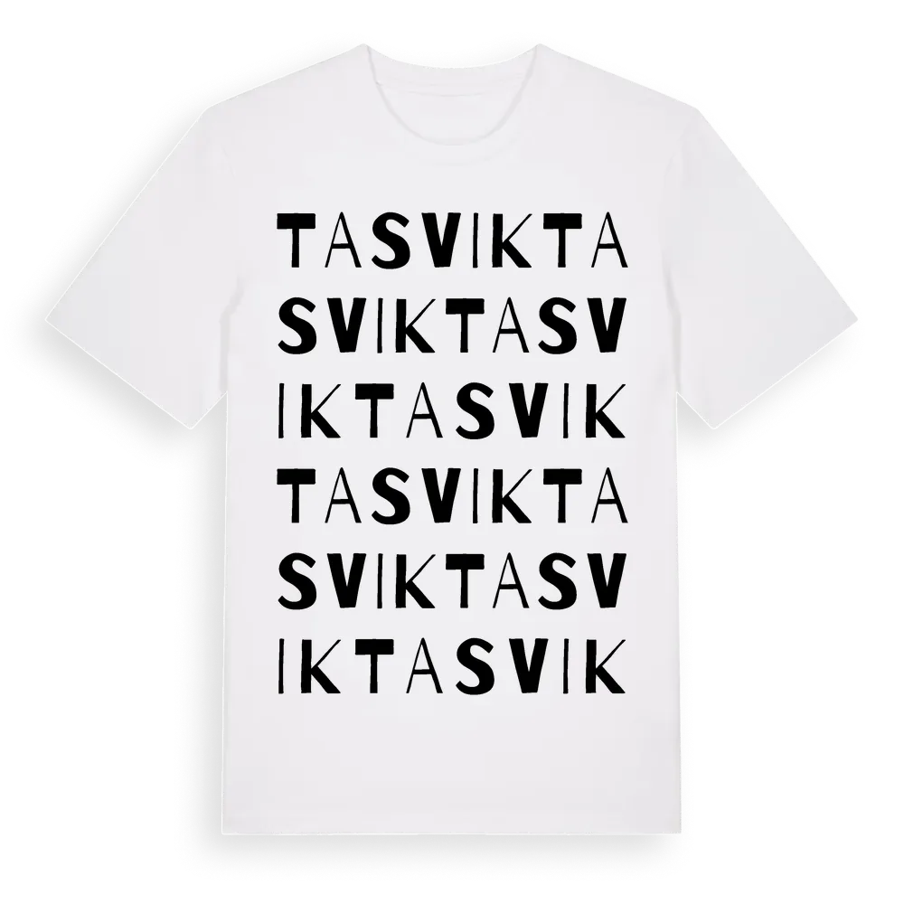 Tasvik ordlek t-shirt är inspirerad av Tasvik i Östergötlands län, Sverige. Tröjan är designad för dig som har en speciell koppling till platsen – oavsett om du bor här, har rötterna här eller bara älskar Tasvik.