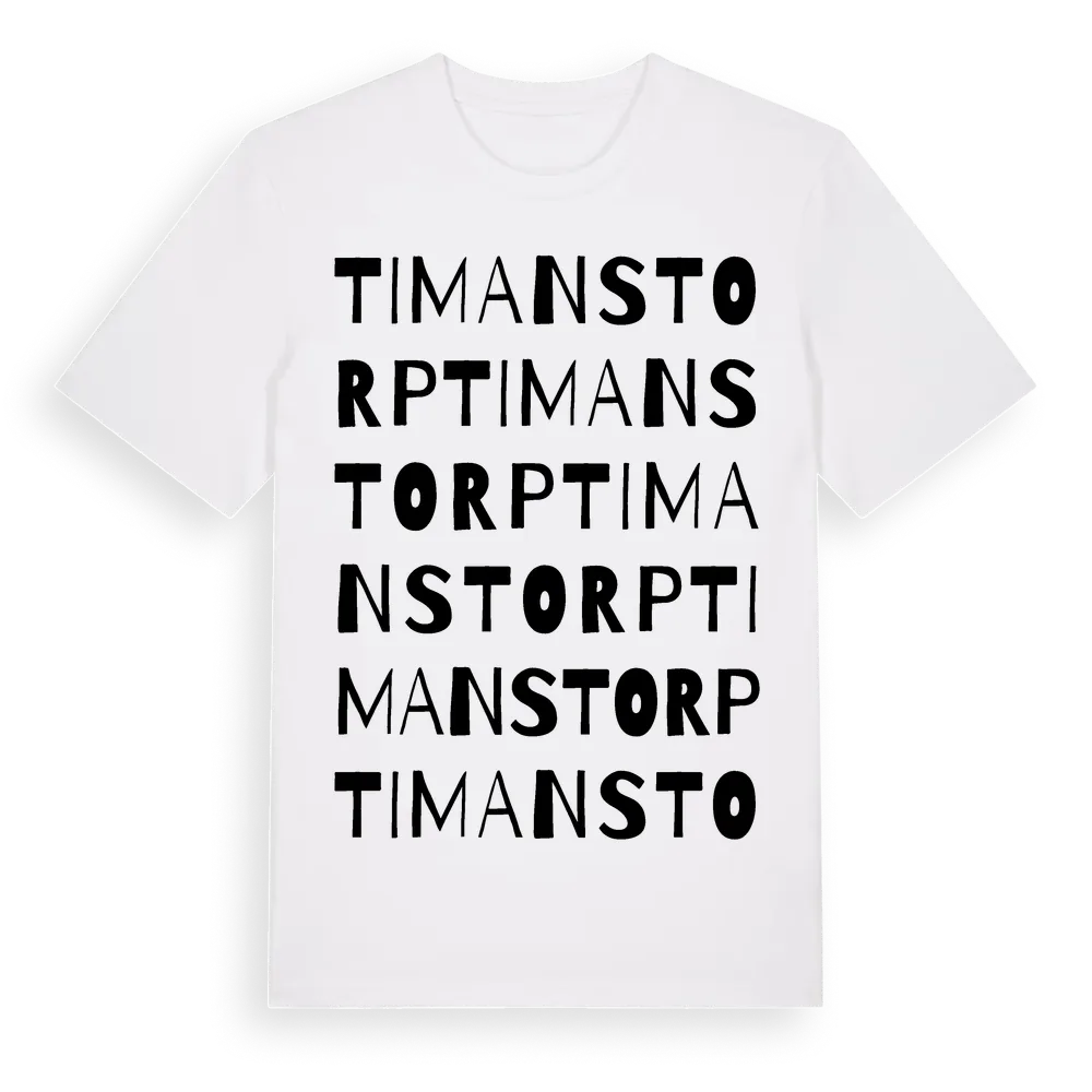 Timanstorp ordlek t-shirt är inspirerad av Timanstorp i Östergötlands län, Sverige. Tröjan är designad för dig som har en speciell koppling till platsen – oavsett om du bor här, har rötterna här eller bara älskar Timanstorp.