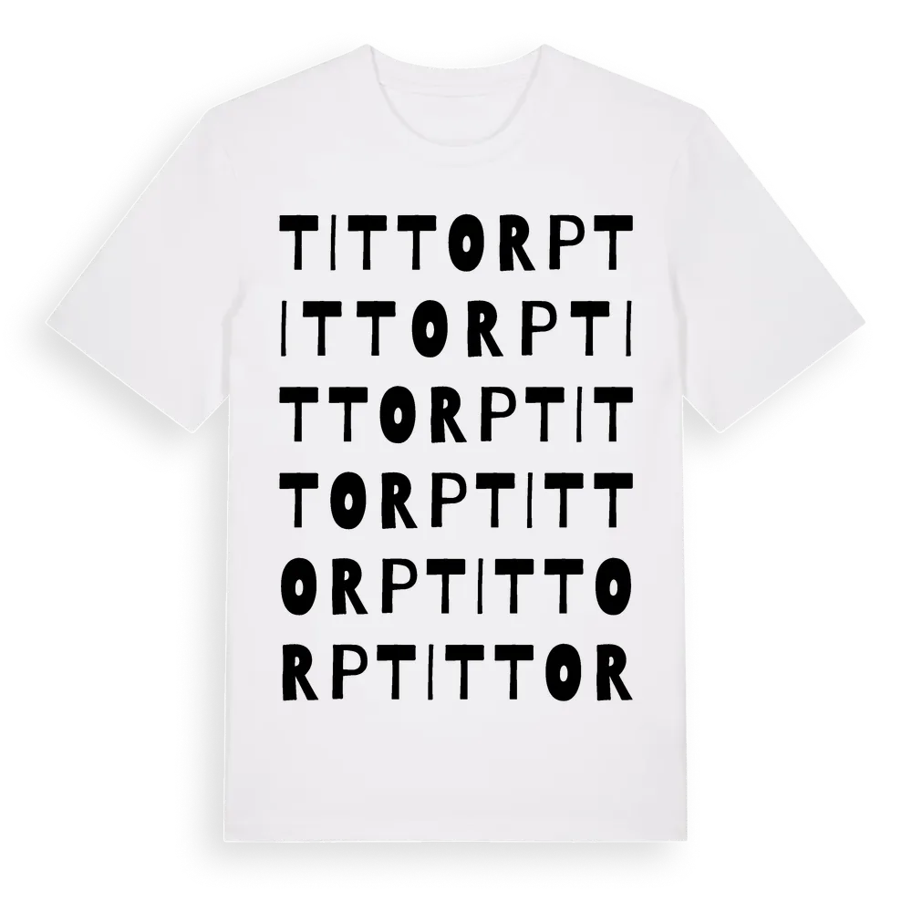Tittorp ordlek t-shirt är inspirerad av Tittorp i Östergötlands län, Sverige. Tröjan är designad för dig som har en speciell koppling till platsen – oavsett om du bor här, har rötterna här eller bara älskar Tittorp.