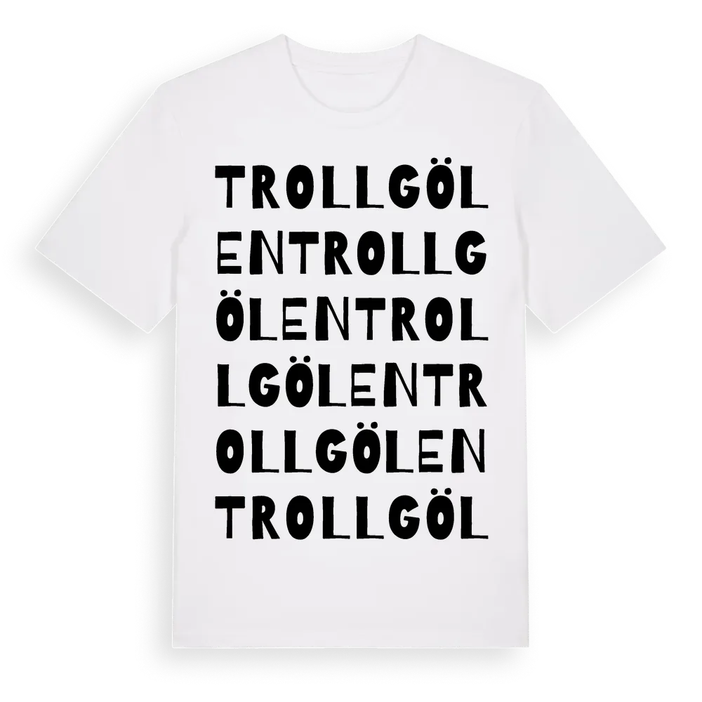 Trollgölen ordlek t-shirt är inspirerad av Trollgölen i Östergötlands län, Sverige. Tröjan är designad för dig som har en speciell koppling till platsen – oavsett om du bor här, har rötterna här eller bara älskar Trollgölen.