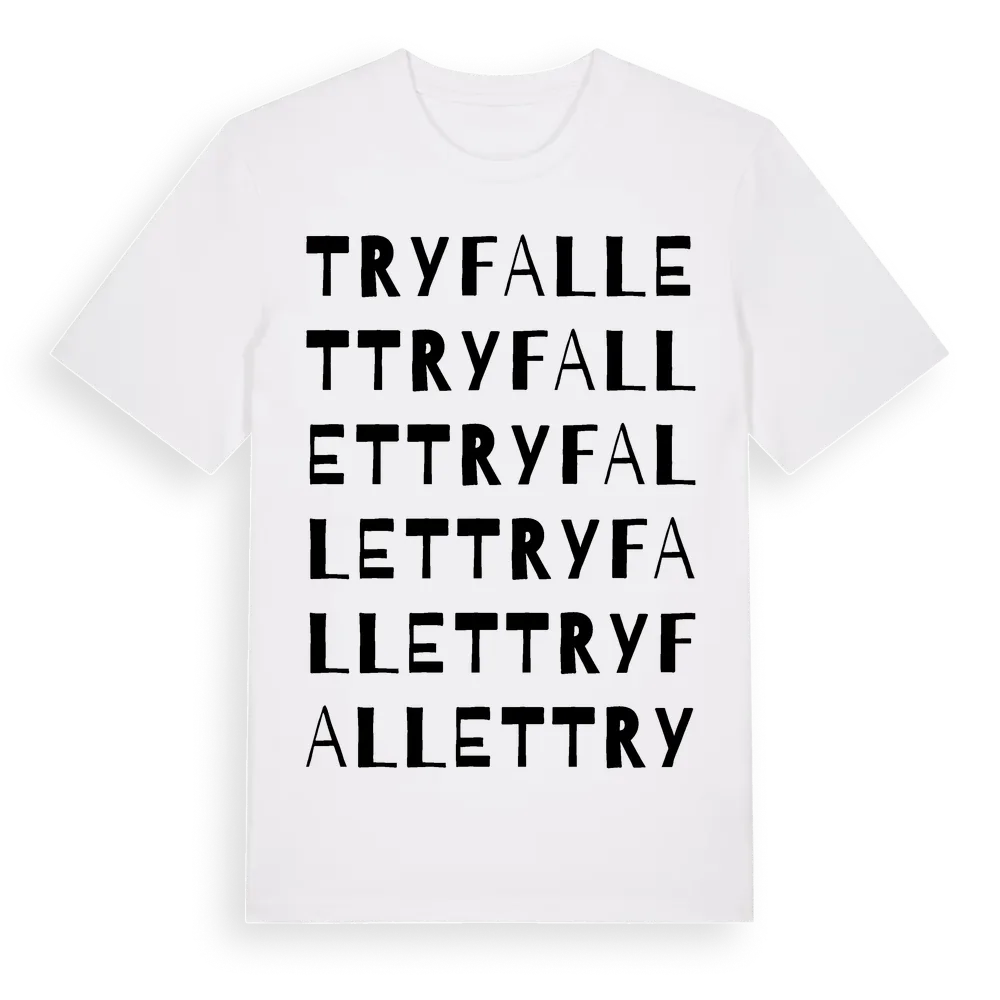 Tryfallet ordlek t-shirt är inspirerad av byn Tryfallet i Östergötlands län, Sverige. Tröjan är designad för dig som har en speciell koppling till platsen – oavsett om du bor här, har rötterna här eller bara älskar Tryfallet.