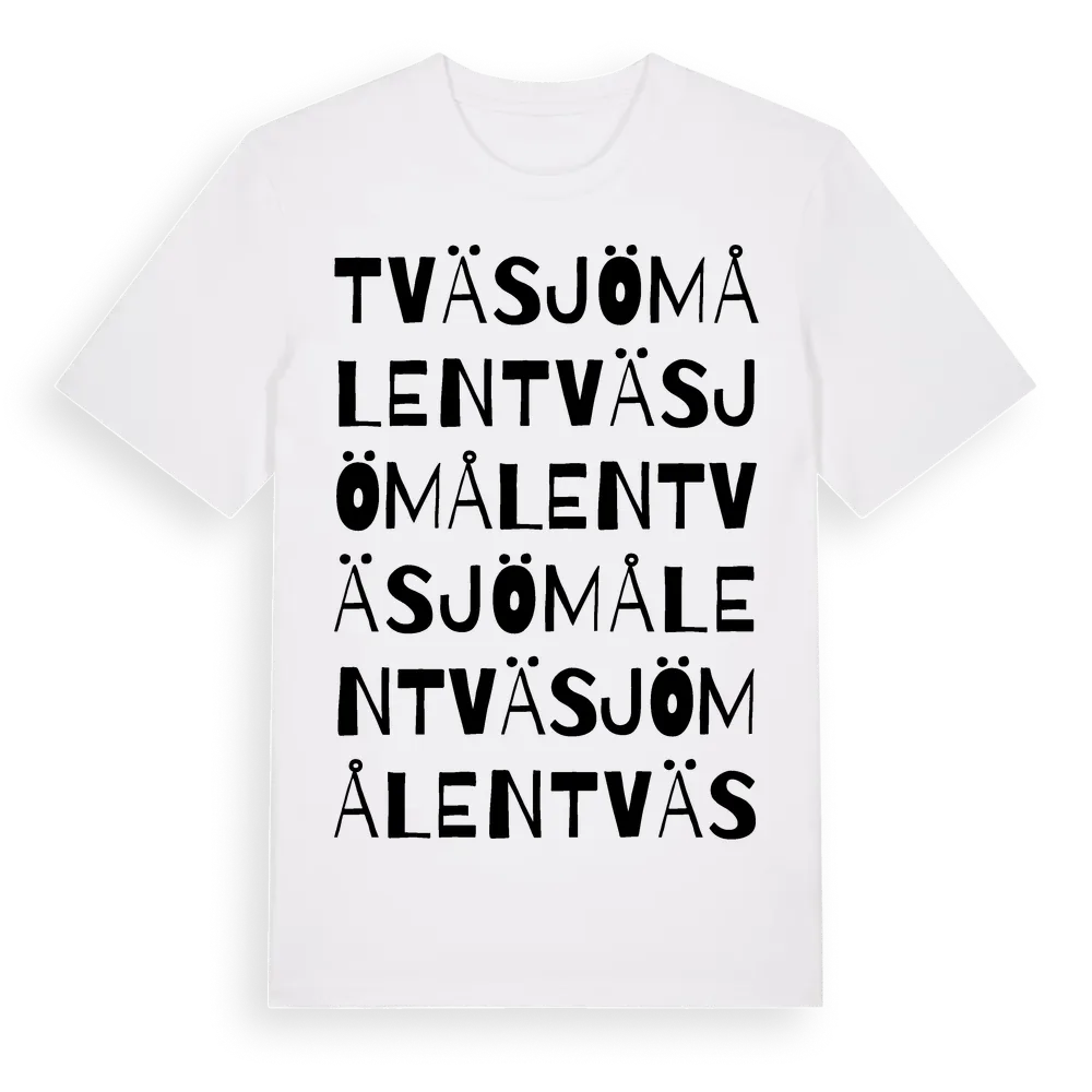 Tväsjömålen ordlek t-shirt är inspirerad av Tväsjömålen i Östergötlands län, Sverige. Tröjan är designad för dig som har en speciell koppling till platsen – oavsett om du bor här, har rötterna här eller bara älskar Tväsjömålen.