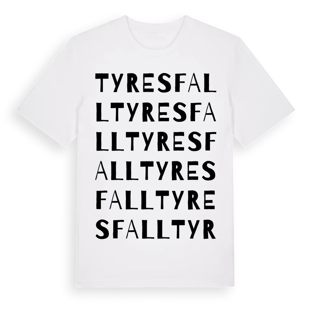 En ordlek byggd på Tyresfalls namn. Subtilt och klurig – ett motiv som bara de som verkligen känner platsen fullt ut förstår. Premium bomull, unisex – från byn Tyresfall i Östergötlands län.