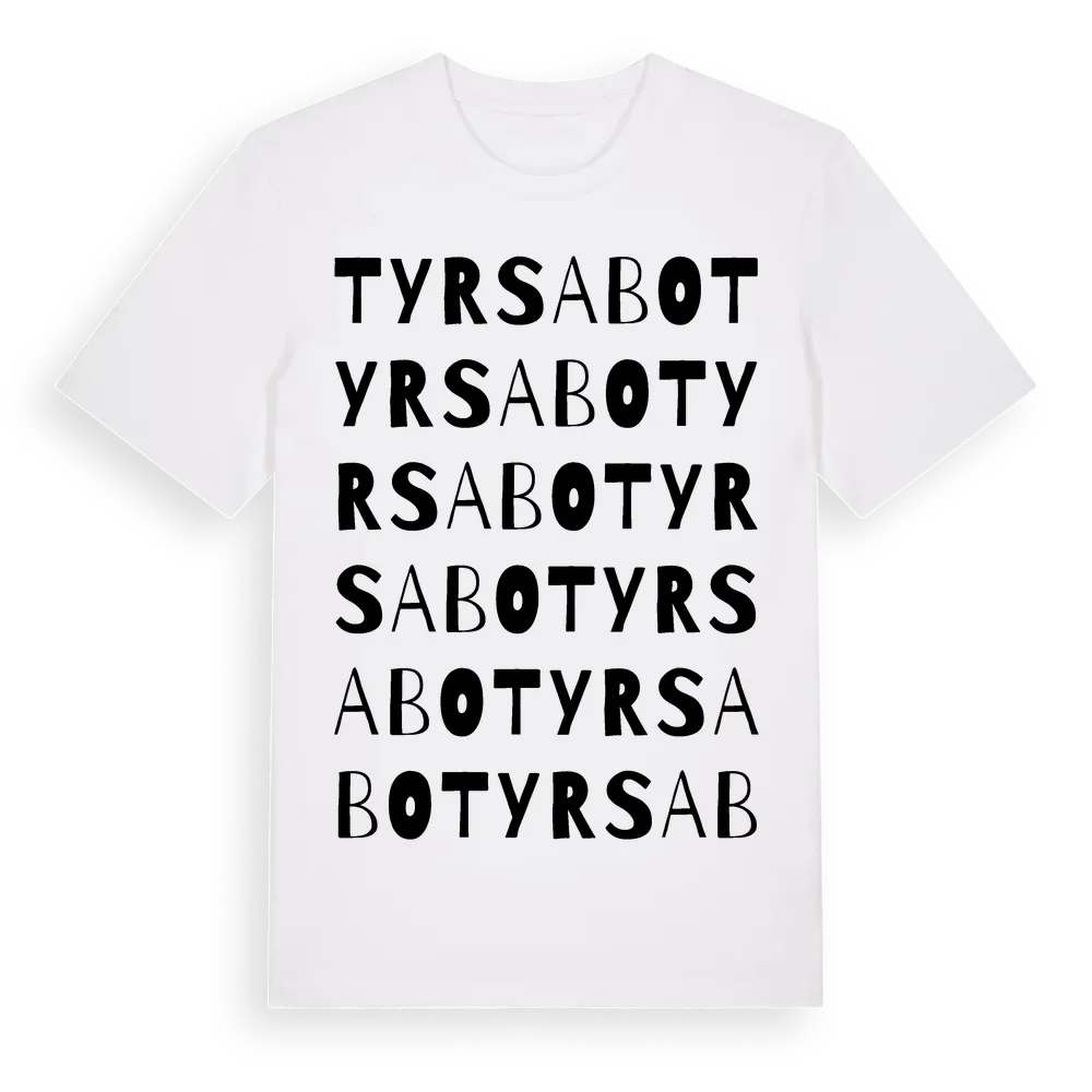Tyrsabo ordlek t-shirt är inspirerad av Tyrsabo i Östergötlands län, Sverige. Tröjan är designad för dig som har en speciell koppling till platsen – oavsett om du bor här, har rötterna här eller bara älskar Tyrsabo.