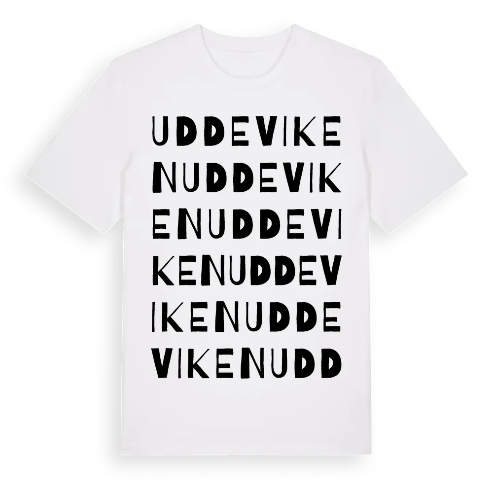 Uddeviken ordlek t-shirt är inspirerad av Uddeviken i Östergötlands län, Sverige. Tröjan är designad för dig som har en speciell koppling till platsen – oavsett om du bor här, har rötterna här eller bara älskar Uddeviken.