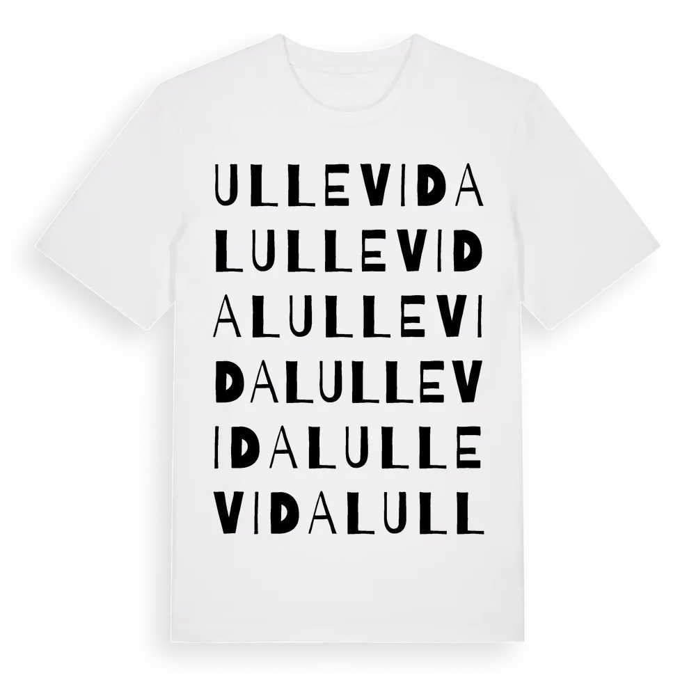Ullevidal ordlek t-shirt är inspirerad av Ullevidal i Östergötlands län, Sverige. Tröjan är designad för dig som har en speciell koppling till platsen – oavsett om du bor här, har rötterna här eller bara älskar Ullevidal.