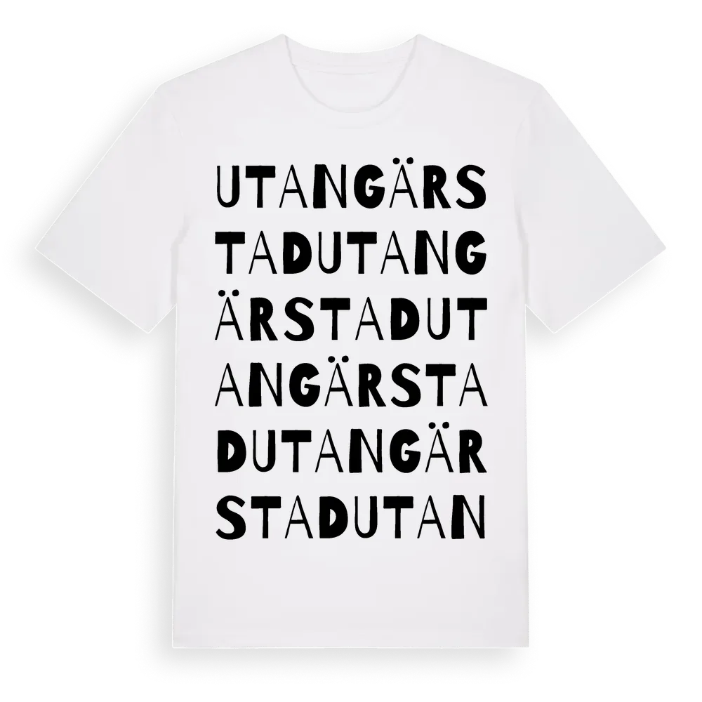 Utangärstad ordlek t-shirt är inspirerad av byn Utangärstad i Östergötlands län, Sverige. Tröjan är designad för dig som har en speciell koppling till platsen – oavsett om du bor här, har rötterna här eller bara älskar Utangärstad.