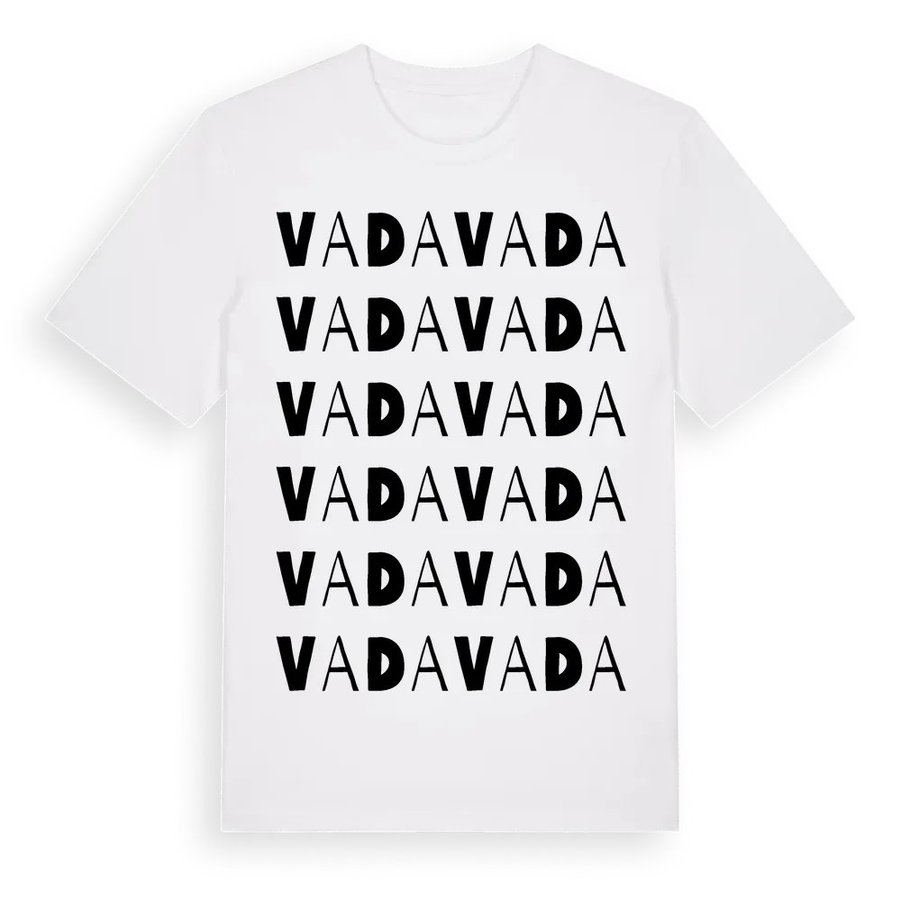 Vada ordlek t-shirt är inspirerad av byn Vada i Östergötlands län, Sverige. Tröjan är designad för dig som har en speciell koppling till platsen – oavsett om du bor här, har rötterna här eller bara älskar Vada.