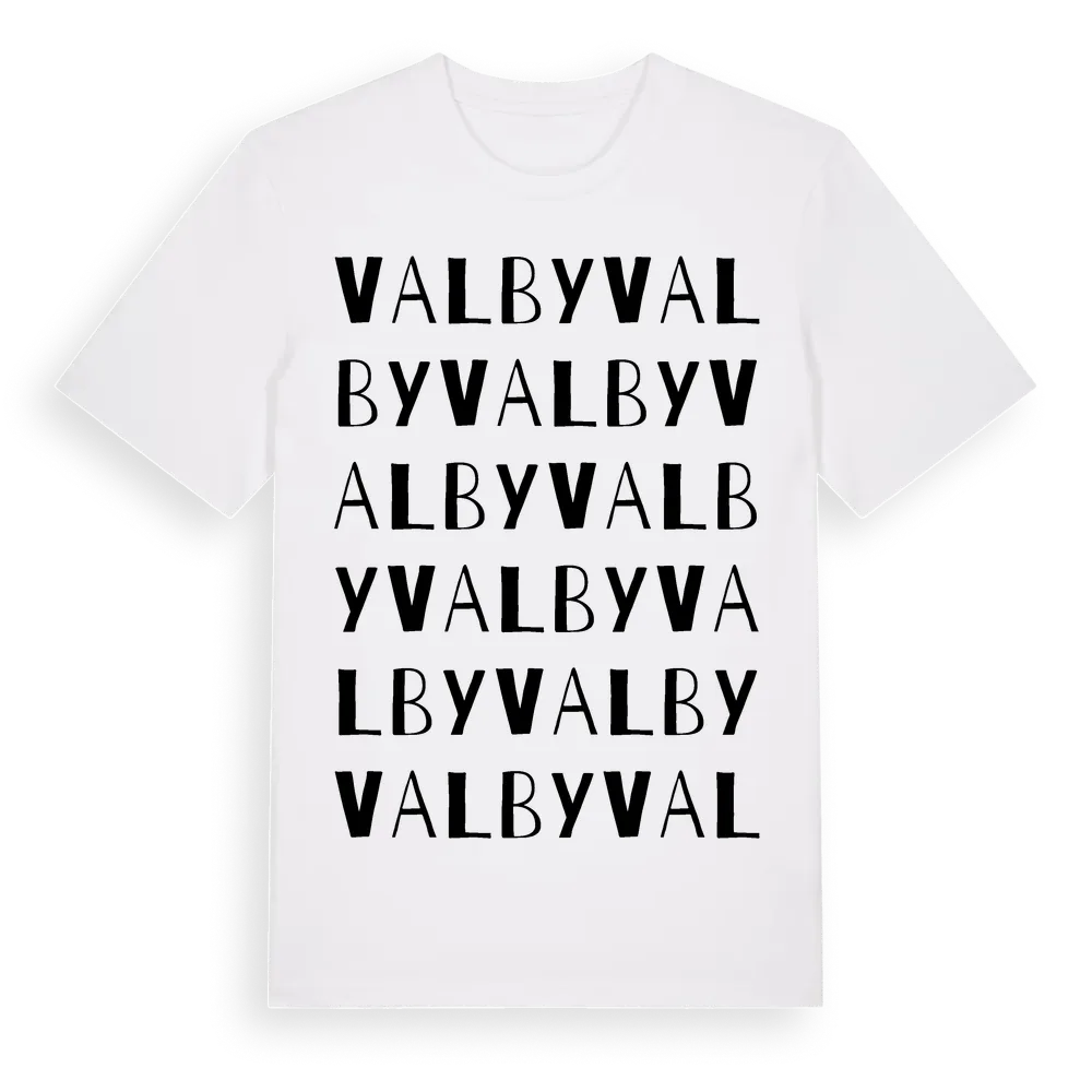 En ordlek byggd på Valbys namn. Subtilt och klurig – ett motiv som bara de som verkligen känner platsen fullt ut förstår. Premium bomull, unisex – från Valby i Östergötlands län.