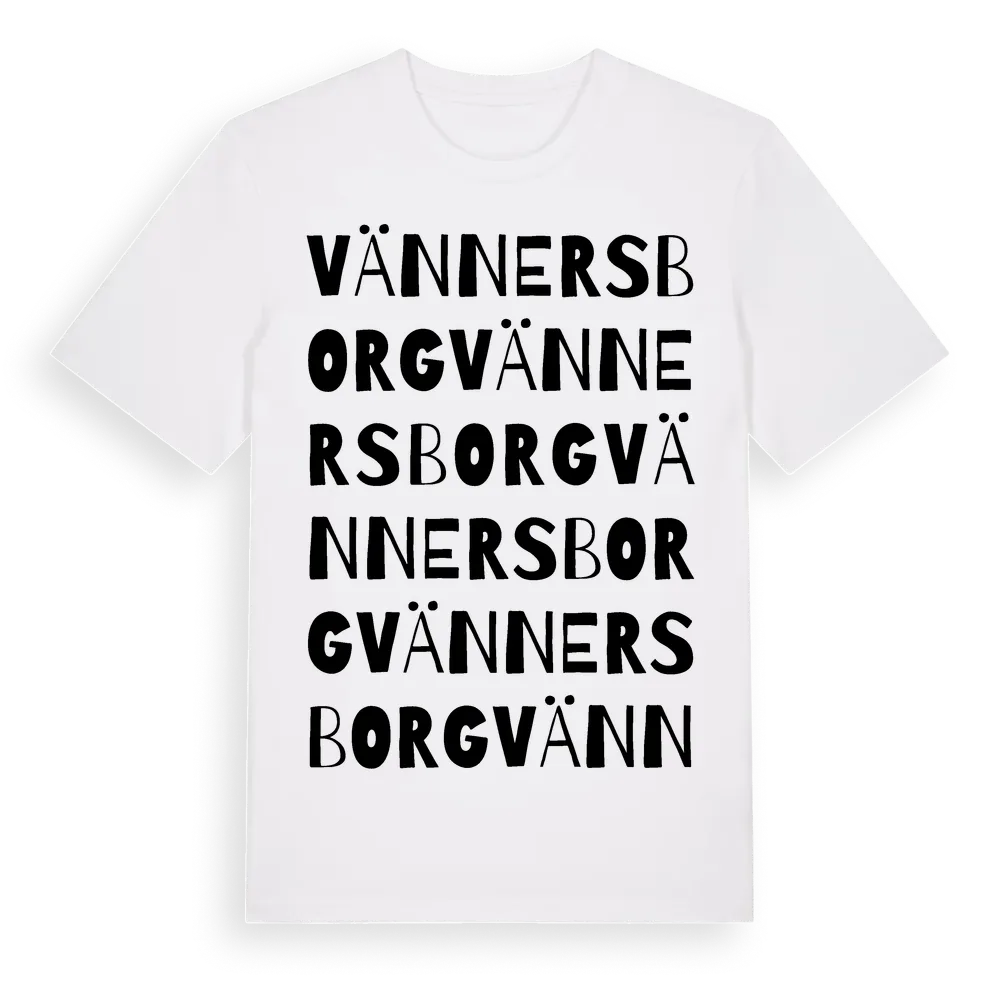 Vännersborg ordlek t-shirt är inspirerad av Vännersborg i Östergötlands län, Sverige. Tröjan är designad för dig som har en speciell koppling till platsen – oavsett om du bor här, har rötterna här eller bara älskar Vännersborg.