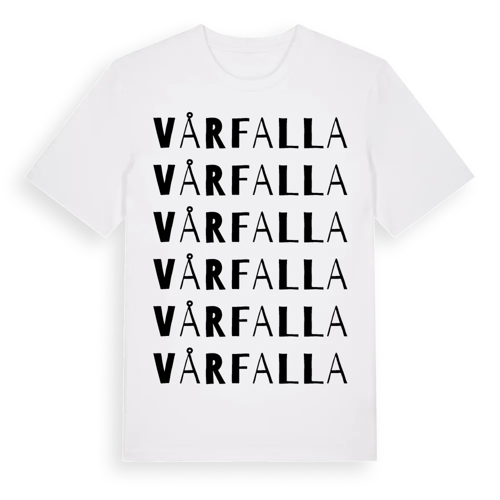 Vårfalla ordlek t-shirt är inspirerad av Vårfalla i Östergötlands län, Sverige. Tröjan är designad för dig som har en speciell koppling till platsen – oavsett om du bor här, har rötterna här eller bara älskar Vårfalla.