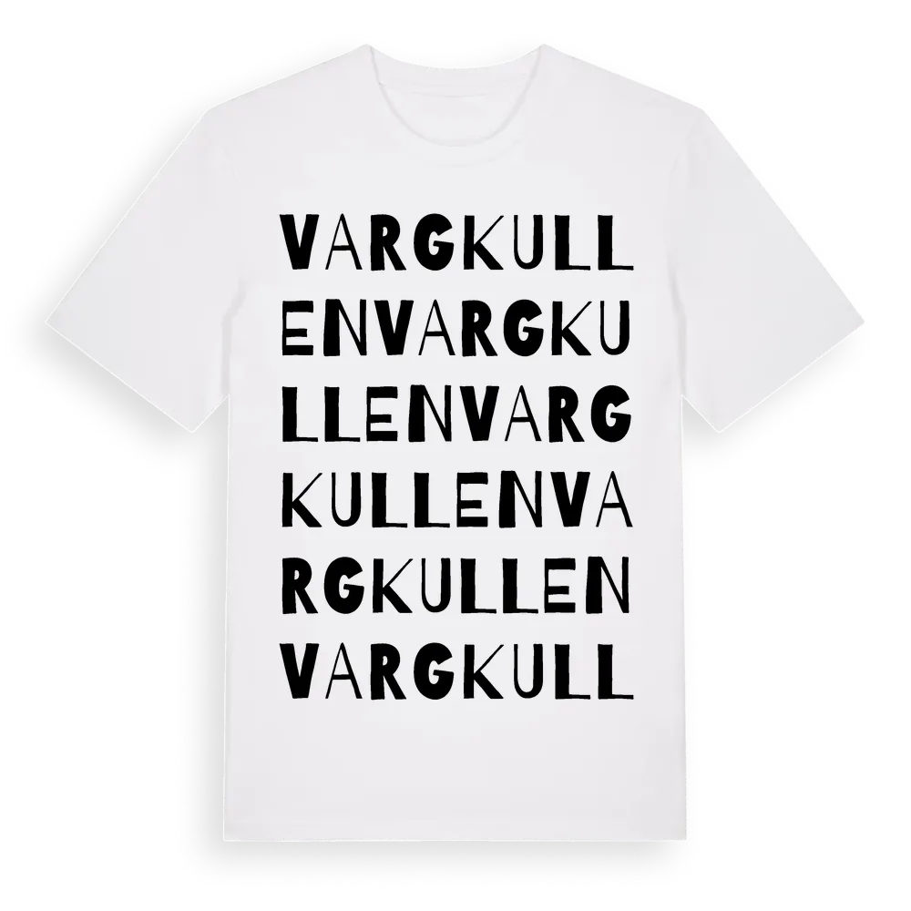 Vargkullen ordlek t-shirt är inspirerad av Vargkullen i Östergötlands län, Sverige. Tröjan är designad för dig som har en speciell koppling till platsen – oavsett om du bor här, har rötterna här eller bara älskar Vargkullen.