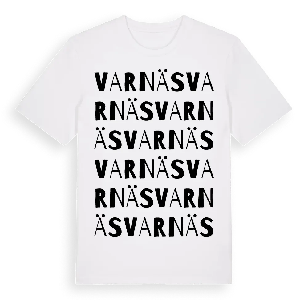 Varnäs ordlek t-shirt är inspirerad av Varnäs i Östergötlands län, Sverige. Tröjan är designad för dig som har en speciell koppling till platsen – oavsett om du bor här, har rötterna här eller bara älskar Varnäs.