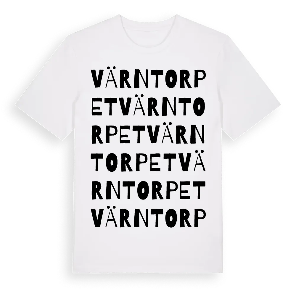 Värntorpet ordlek t-shirt är inspirerad av Värntorpet i Östergötlands län, Sverige. Tröjan är designad för dig som har en speciell koppling till platsen – oavsett om du bor här, har rötterna här eller bara älskar Värntorpet.