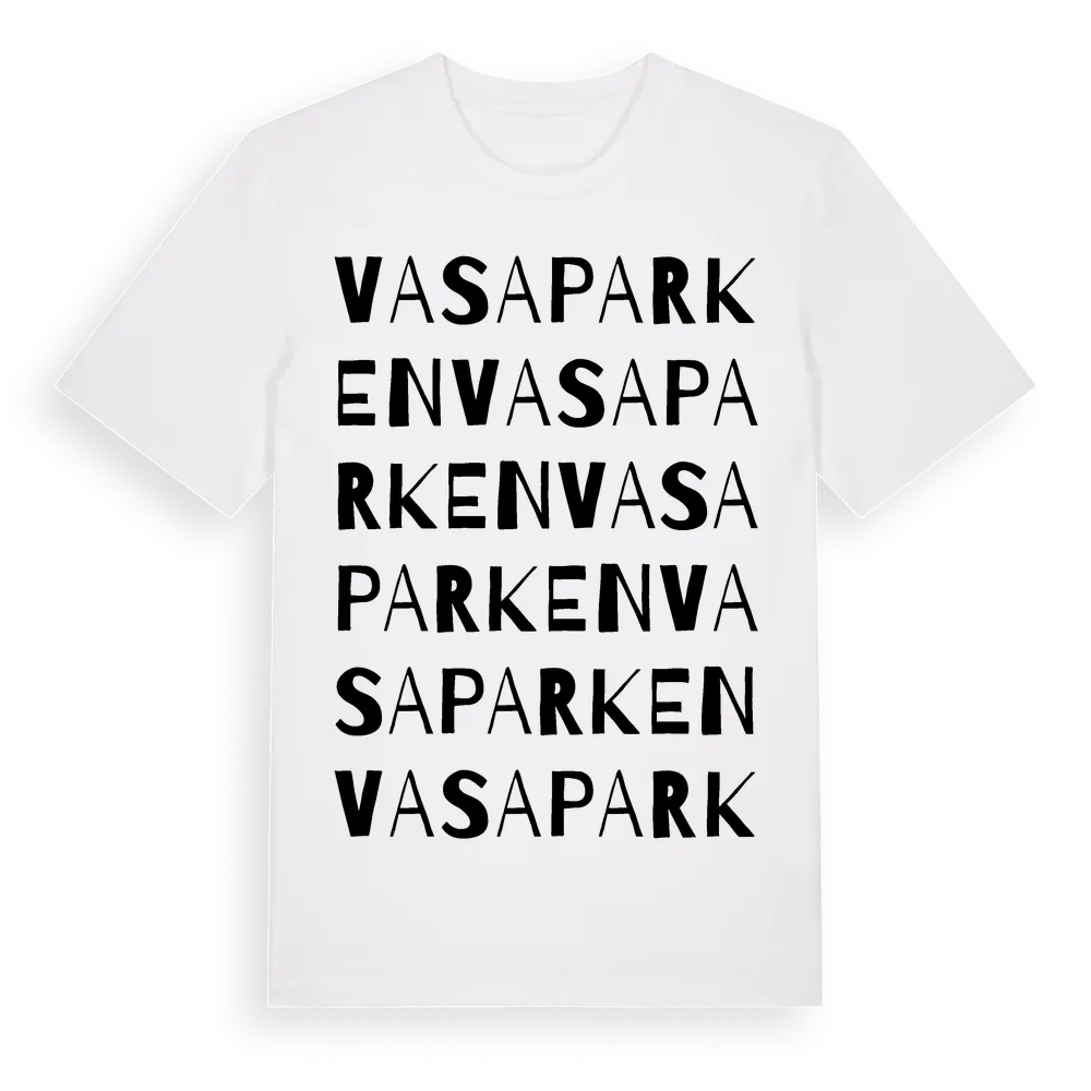 Vasaparken ordlek t-shirt är inspirerad av Vasaparken i Östergötlands län, Sverige. Tröjan är designad för dig som har en speciell koppling till platsen – oavsett om du bor här, har rötterna här eller bara älskar Vasaparken.