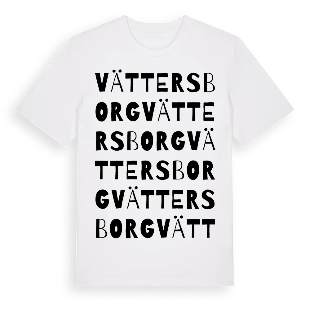 Vättersborg ordlek t-shirt är inspirerad av Vättersborg i Östergötlands län, Sverige. Tröjan är designad för dig som har en speciell koppling till platsen – oavsett om du bor här, har rötterna här eller bara älskar Vättersborg.