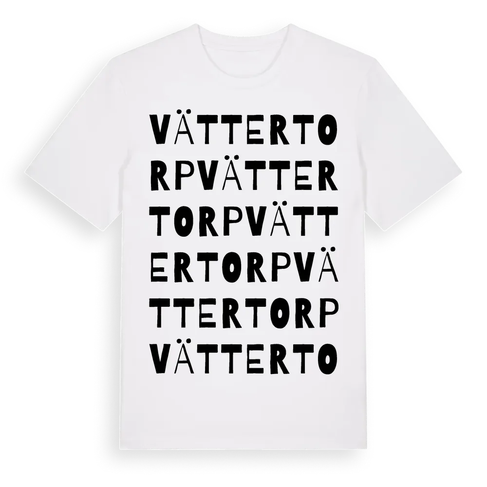 Vättertorp ordlek t-shirt är inspirerad av Vättertorp i Östergötlands län, Sverige. Tröjan är designad för dig som har en speciell koppling till platsen – oavsett om du bor här, har rötterna här eller bara älskar Vättertorp.