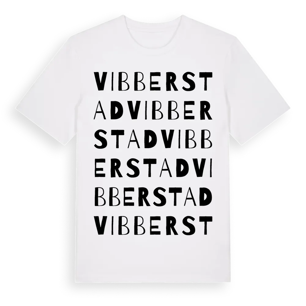 Vibberstad ordlek t-shirt är inspirerad av Vibberstad i Östergötlands län, Sverige. Tröjan är designad för dig som har en speciell koppling till platsen – oavsett om du bor här, har rötterna här eller bara älskar Vibberstad.