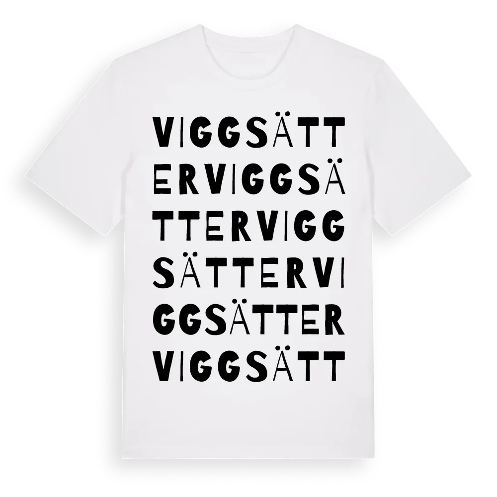 Viggsätter ordlek t-shirt är inspirerad av Viggsätter i Östergötlands län, Sverige. Tröjan är designad för dig som har en speciell koppling till platsen – oavsett om du bor här, har rötterna här eller bara älskar Viggsätter.
