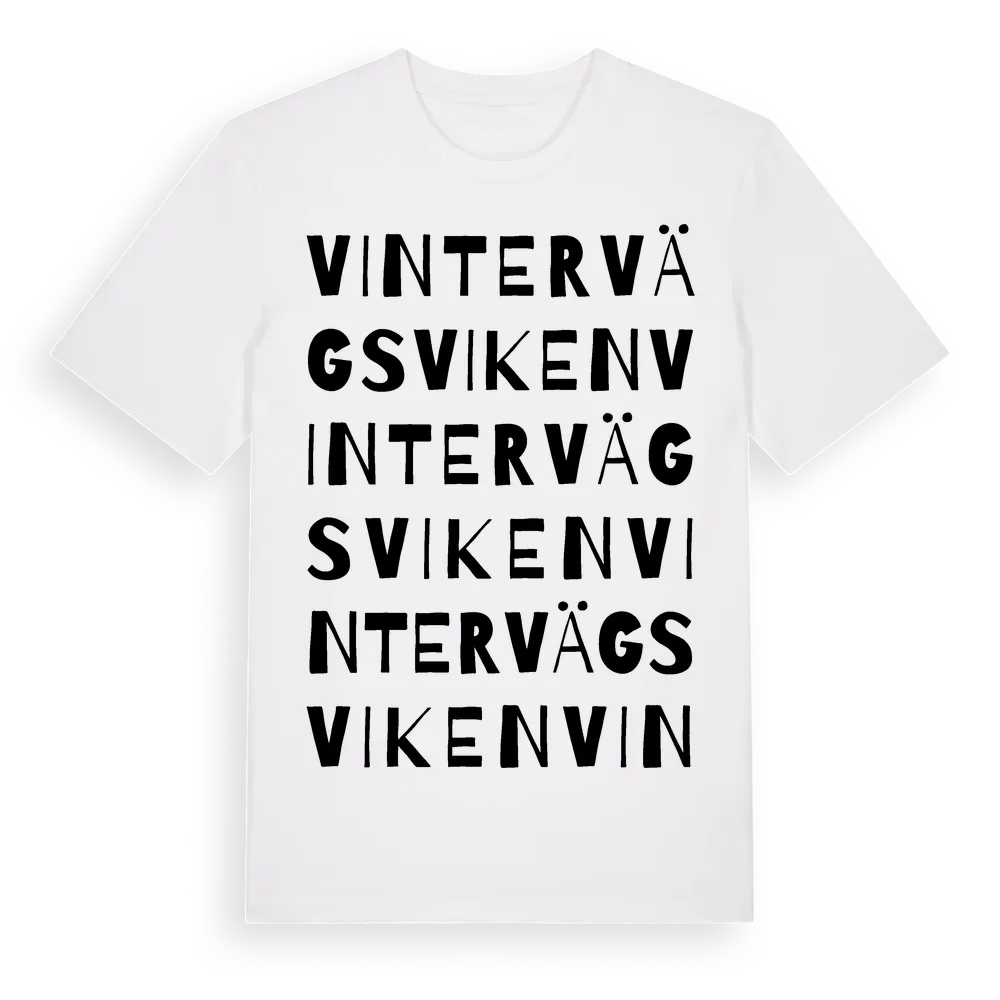 Vintervägsviken ordlek t-shirt är inspirerad av Vintervägsviken i Östergötlands län, Sverige. Tröjan är designad för dig som har en speciell koppling till platsen – oavsett om du bor här, har rötterna här eller bara älskar Vintervägsviken.
