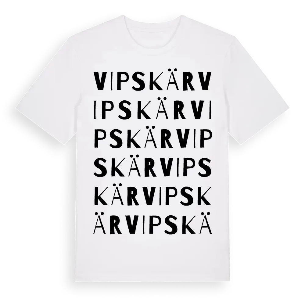 Vipskär ordlek t-shirt är inspirerad av Vipskär i Östergötlands län, Sverige. Tröjan är designad för dig som har en speciell koppling till platsen – oavsett om du bor här, har rötterna här eller bara älskar Vipskär.